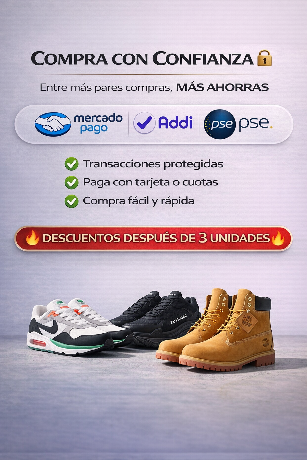 En nuestra tienda online encontrarás sneakers de alta calidad. Trabajamos cada día para ofrecerte la mejor experiencia de compra, porque tu satisfacción es nuestra prioridad.